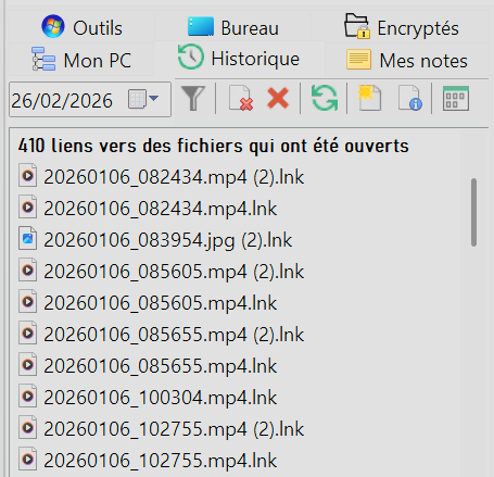 - History, a recent files explorer (links to previously opened files);